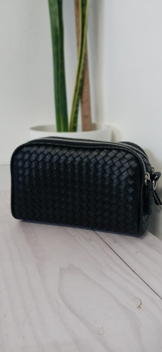 Golfera en cuero sintético. Material con tramas.